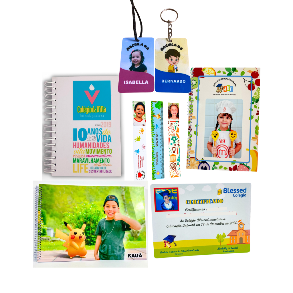 - Identificação fácil: Evite perdas e trocas de materiais com etiquetas, crachás e pulseiras personalizadas com nome, turma, foto e logotipo da escola.